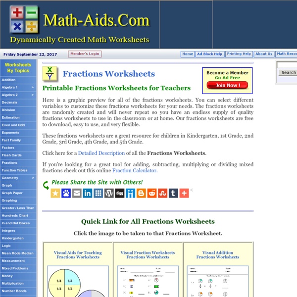 Math-Aids.com Fractions Worksheets / 445 best Math-Aids.Com images on Pinterest | Secondary ... / Fractions worksheets backed by cool lessons this site is all about the fractions.